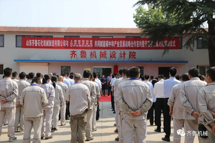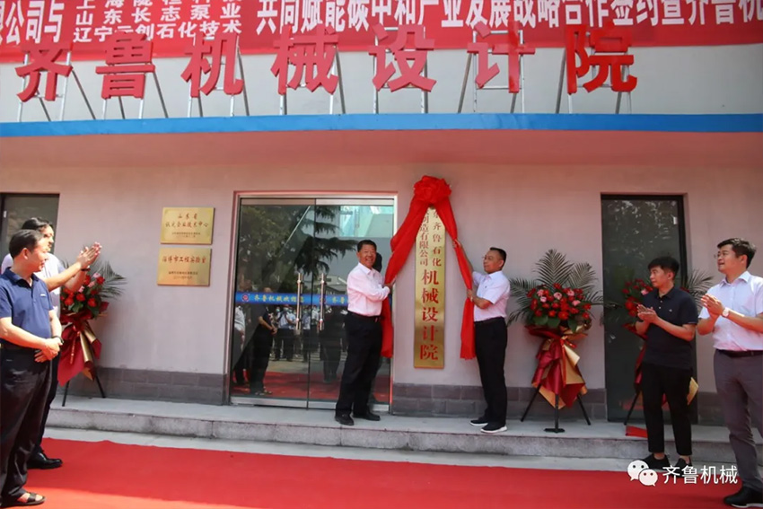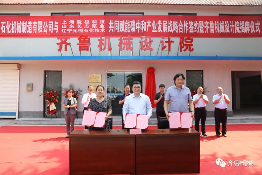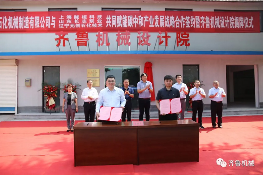 9月12日,山東齊魯石化機(jī)械制造有限公司與上海隴桓科技有限公司、山東長志泵業(yè)有限公司、遼寧元?jiǎng)?chuàng)石化技術(shù)有限公司共同賦能碳中和產(chǎn)業(yè)發(fā)展戰(zhàn)略合作簽約暨齊魯機(jī)械設(shè)計(jì)院揭牌儀式在齊魯機(jī)械設(shè)計(jì)院門前隆重舉行。