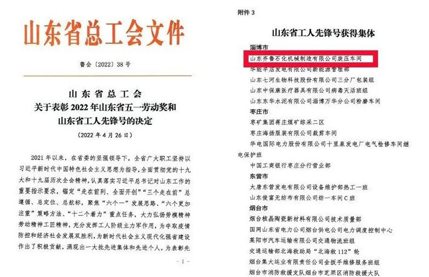 五一勞動(dòng)節(jié)前夕,山東省工人先鋒號(hào)的表彰人選(集體)完成公示,山東齊魯石化機(jī)械制造有限公司旋壓車間成功入選“山東省工人先鋒號(hào)”。沉甸甸的獎(jiǎng),沉甸甸的榮譽(yù),作為省內(nèi)工人階級(jí)最高獎(jiǎng)項(xiàng)之一,此項(xiàng)殊榮的授予是對(duì)旋壓車間一線員工具備新時(shí)代工人精神的充分肯定和高度贊譽(yù)。